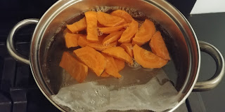 Obieramy i kroimy, nie za drobno, marchewkę- dorzucamy do gotującego się ryżu.