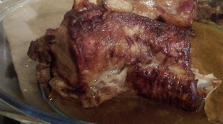 Jeśli chcecie zaserwować na obiad, proponuję sos, który zostanie z pieczenia lekko zredukować w garnku. Mięsko oddzielić od kości, dodać do sosu. Można jeszcze na koniec dorzucić nieco szałwii, by dodatkowo podbić aromat.