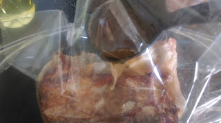Próbujemy i doprawiamy solą jeśli to konieczne. Mięso solimy (ok 1/2 łyżeczki) i przekładamy do rękawa.