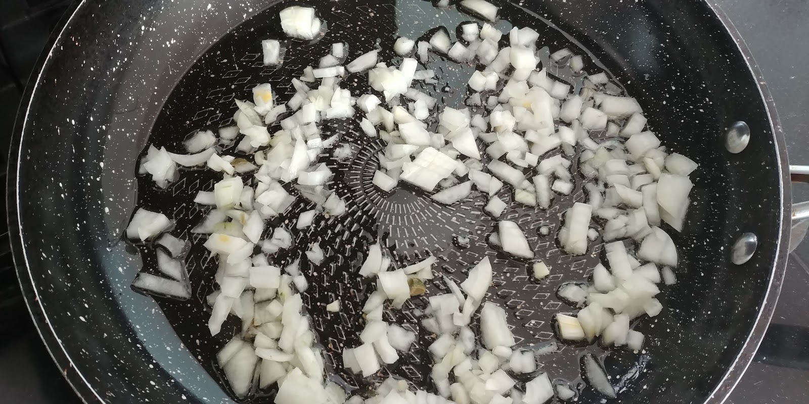 W międzyczasie kroimy cebulę w pióra i podsmażamy na niewielkiej ilości oleju.