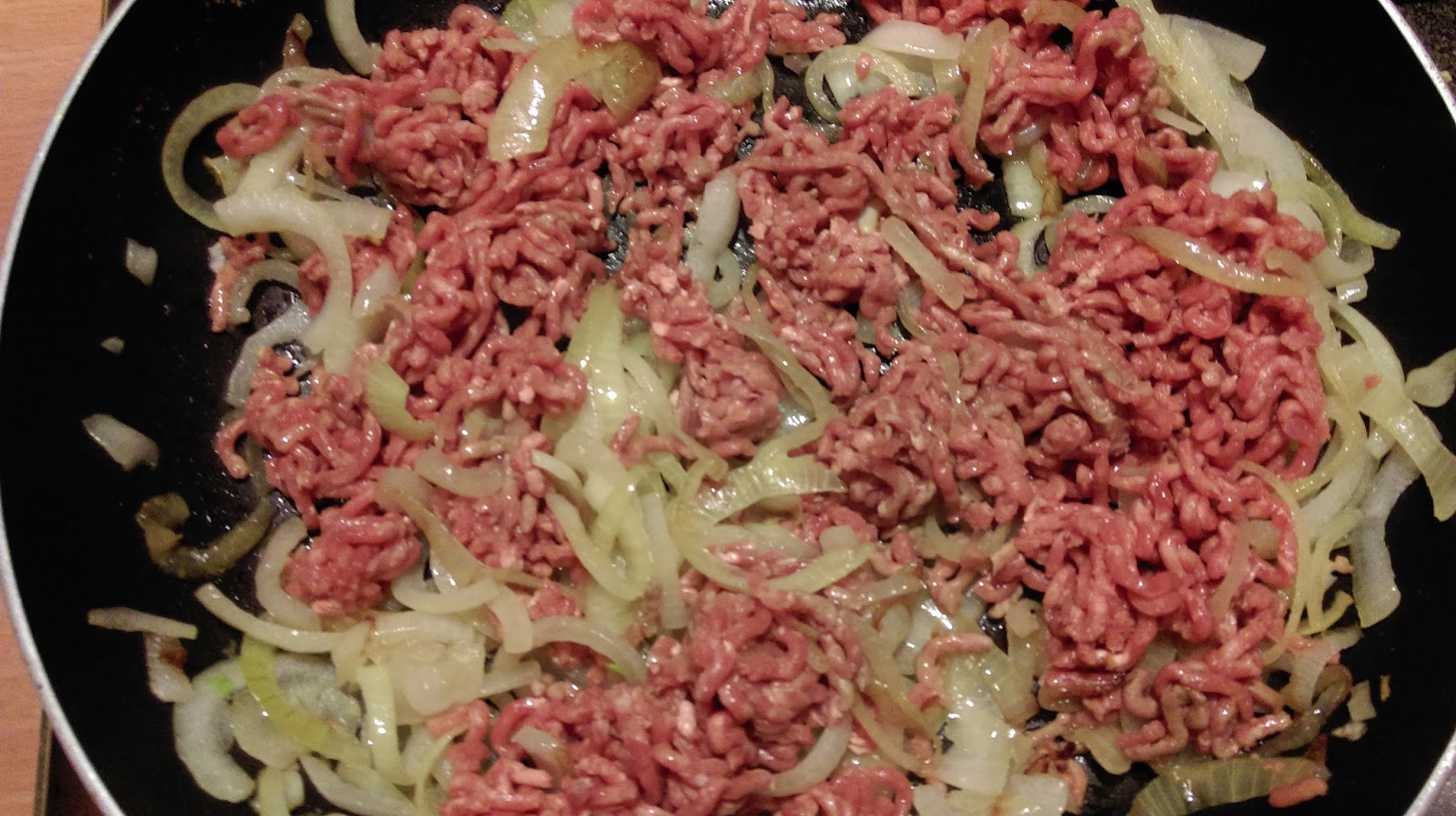 Gdy lekko się zeszkli, dodajemy wołowinę.