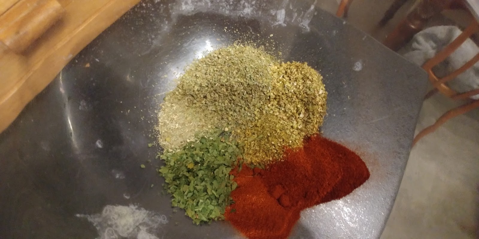 Kurczaka czyścimy, myjemy, osuszamy. Przygotowujemy marynatę. Do miseczki wrzucamy suche składniki, zioła i paprykę.
