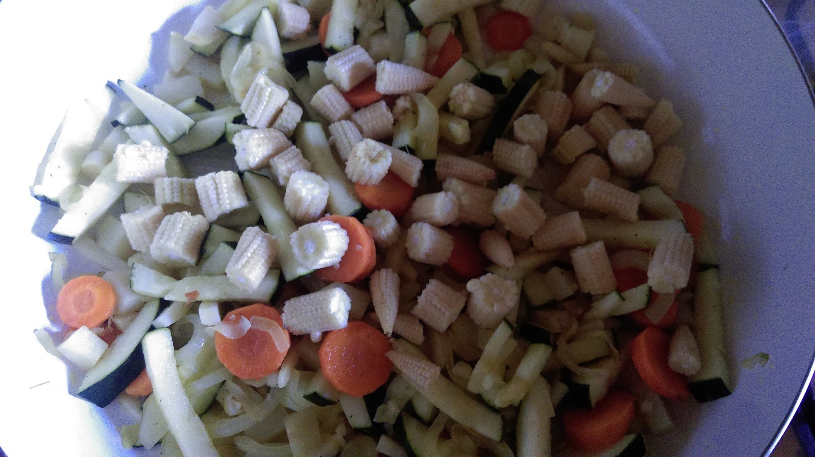 Następnie dorzucamy także lekko poszatkowaną kapustę.