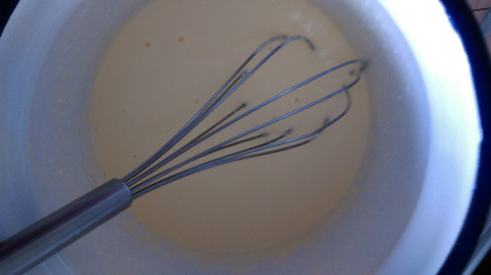 Serek mieszamy z żółtkami i mlekiem, na gładką masę.