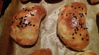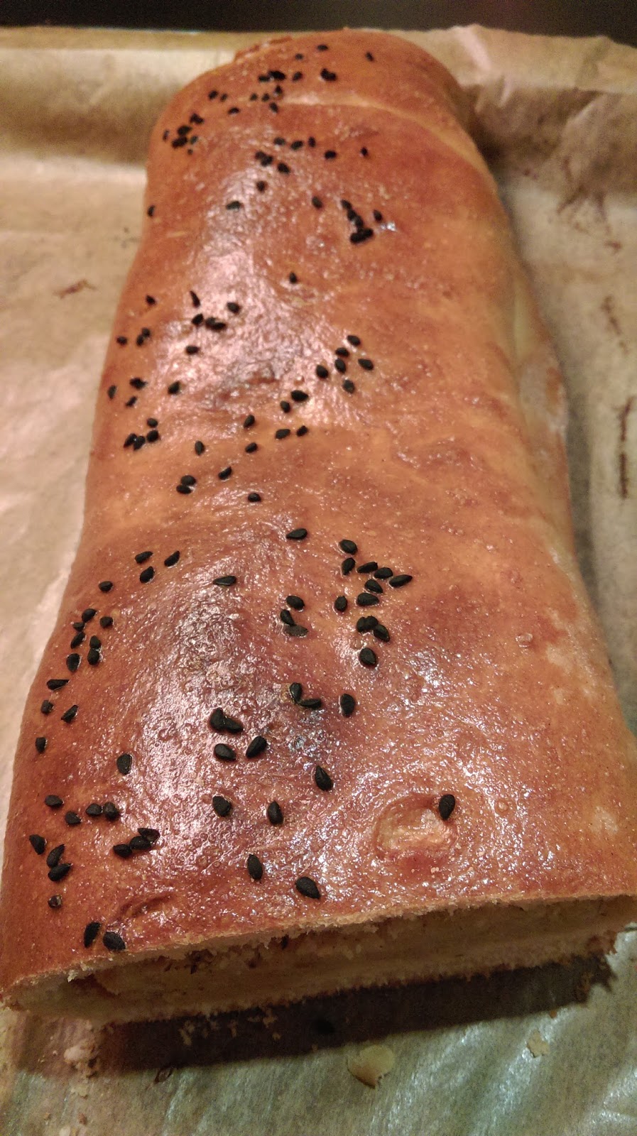 Dalej procedura ta sama- przełóżcie na blaszkę z papierem (tak aby łączenia znalazły się pod spodem), żółtko, czarnuszka,