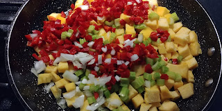 Podsmażamy na nim wszystkie pokrojone składniki.