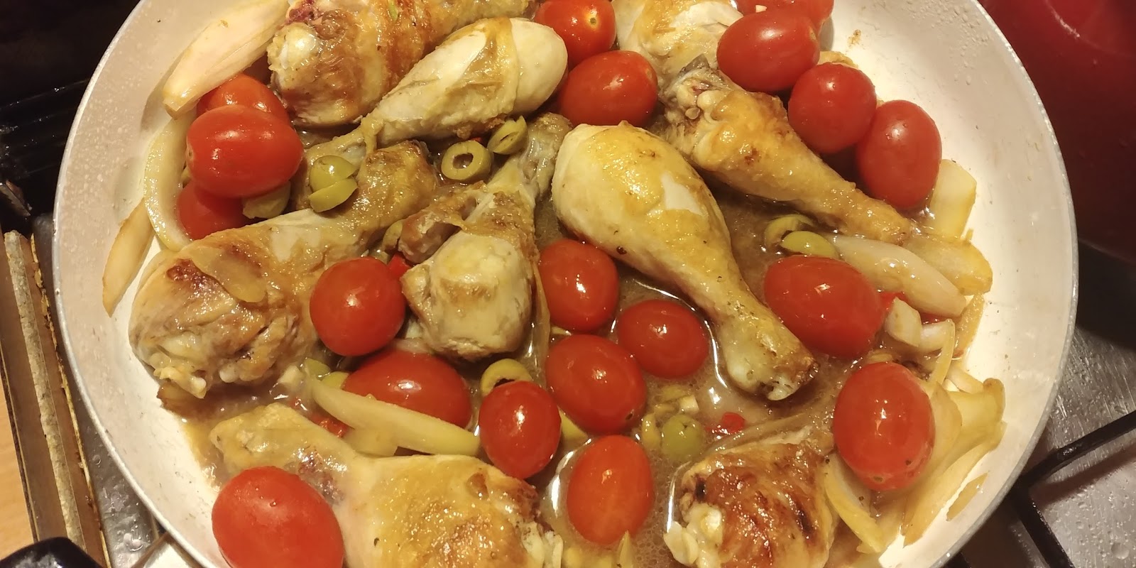 Po chwili dodajemy oliwki i pomidory.