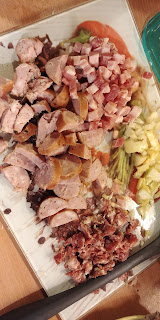 - ok. 500 g wędliny (użyłam kiełbasy, boczku i salami)