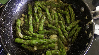 Po około 5 minutach dorzucamy także środkową część szparagów.