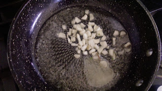 W międzyczasie na maśle, na niedużym ogniu, podsmażamy czosnek, ok. 2 minuty.