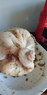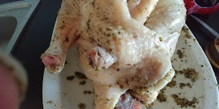 Ptaka wstawiamy do piekarnika nagrzanego do 210 stopni i pieczemy 30 minut (góra-dół). W międzyczasie obieramy warzywa i kroimy w spore kawałki- ćwiartki lub ósemki.