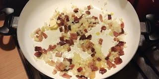 Dodajemy pokrojoną w kostkę cebulę.