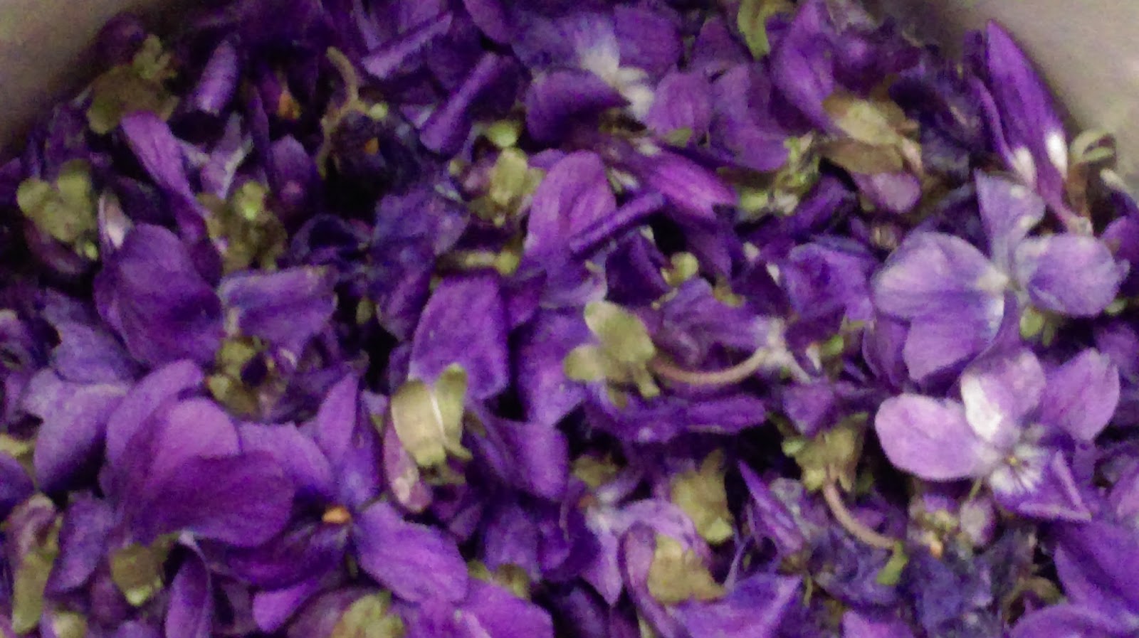 Fiołki zbieramy w słoneczny dzień, najlepiej koło południa. Jest to dość ważne, inaczej otrzymamy słodką wodę w ciekawym kolorze i nic poza tym. Dobrze przełożyć je na jakąś godzinkę na jasną powierzchnię, najlepiej kartkę, aby ujawnili się ewentualni mieszkańcy kwiatków 😉